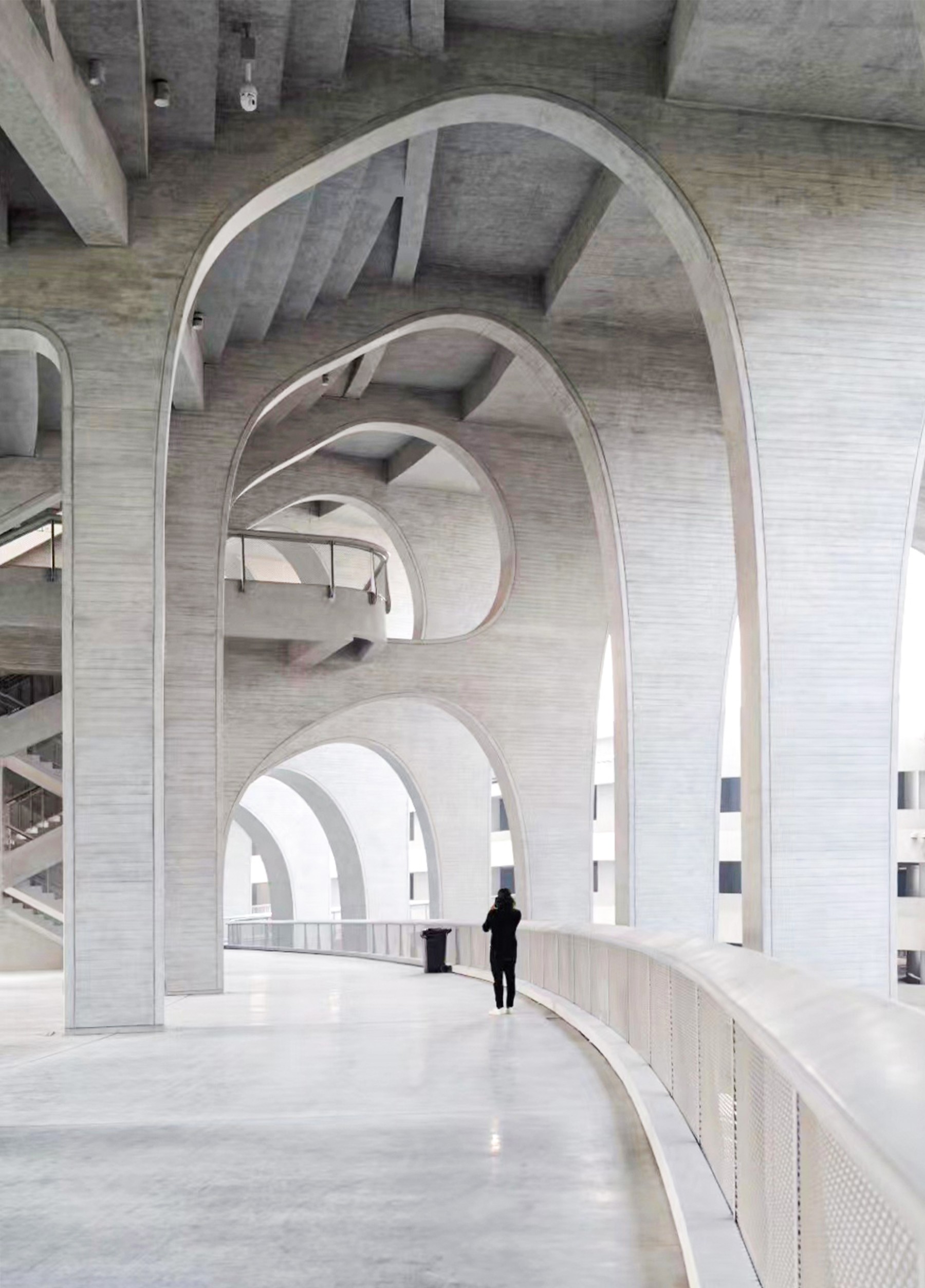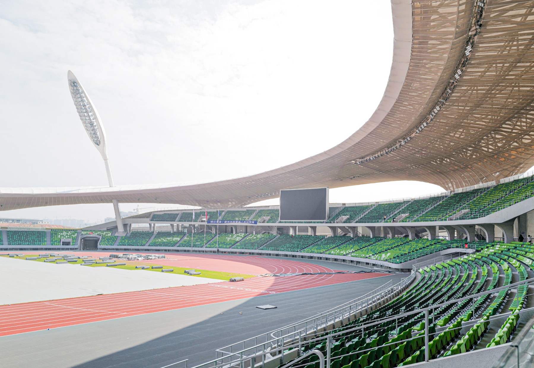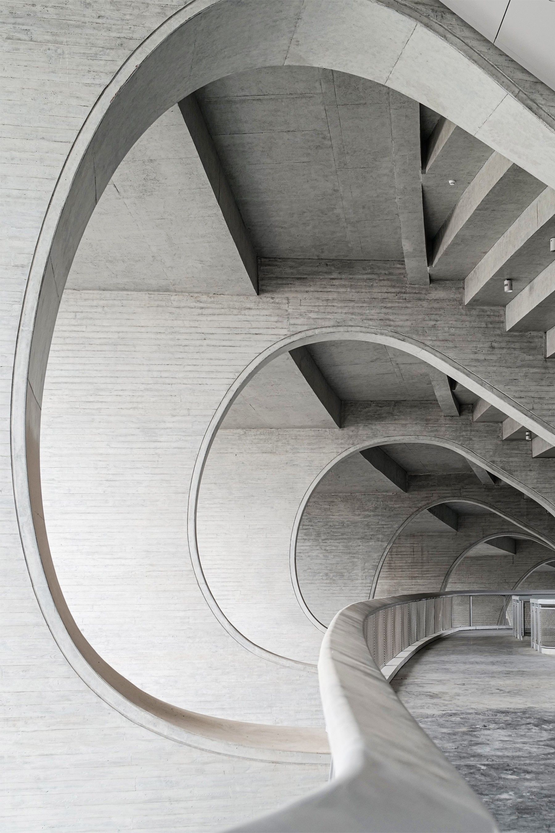 MAD Architects aims to create an earthwork art space where everyone can participate and engage in a dialogue with the universe and the natural landscape of Zhejiang,offering a place for wandering to those who are constantly on the go in modern cities.The exposed wood-grained fair-faced concrete panel walls dispense with interior and exterior decorative layers,serving as both the structure and the architecture itself.The purity and simplicity of the concrete material,along with the delicate design details,soften the mass of the stadium while creating a rhythmic spatial cadence.